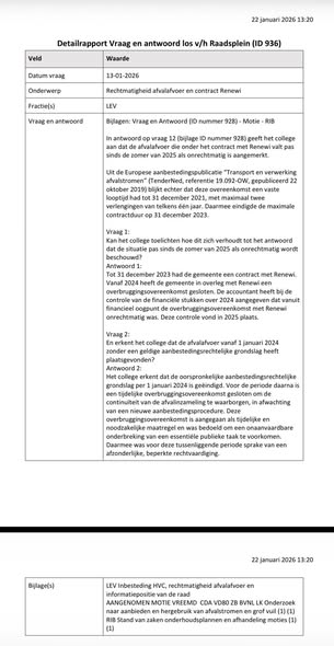 Toch besloot het college op 3 februari opnieuw een contract te sluiten voor afvalverwerking, zonder vooraf helder en publiekelijk aan te tonen dat dit juridisch volledig waterdicht is. Zeker gezien wat er eerder is misgegaan, is dat zorgwekkend. Juist dan mag extra zorgvuldigheid worden verwacht.
